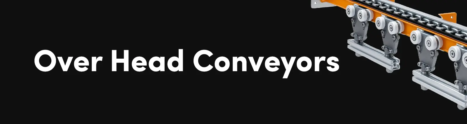 Monorail Conveyors are single-track overhead material handling systems designed to move products smoothly along a defined path using a continuous or intermittent motion. The system consists of a rail (usually steel or aluminum) mounted overhead with powered or gravity-driven trolleys that carry loads across workstations. Ideal for streamlined, linear movement, monorail conveyors are used in environments where floor space optimization, clean operation, and precise routing are essential.