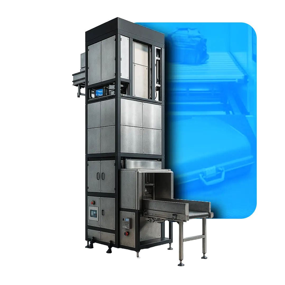 Ideal for airport baggage handling, automated warehouses, distribution centers, mezzanine systems, and manufacturing lines, this system is perfect for high-volume product elevation with minimal floor footprint, low noise, and seamless integration with horizontal conveyors or robotic systems.